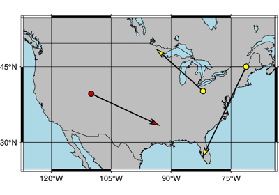Plot velocity vectors, strain crosses, anisotropy bars, and wedges. |